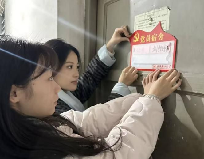 授牌后,学生党员们小心翼翼地将铭牌悬挂在各自寝室门口。一块小小的铭牌,不仅亮明了党员身份,更让责任与担当有了具体的落点,时刻提醒着大家以党员标准严格要求自己。