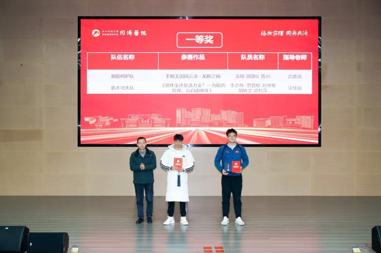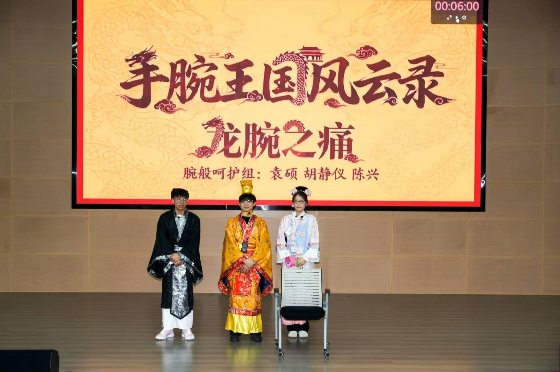 近日,华中科技大学同济医学院附属同济医院2025-2026学年实习生康复治疗科普大赛圆满落幕。我校康复治疗专业实习生袁硕、陈兴、胡静仪凭借作品《手腕王国风云录》,在众多参赛项目中脱颖而出,荣获一等奖。该作品以创新古风情境为载体,将专业三角纤维软骨复合体损伤(TFCC损伤)康复知识转化为通俗趣味的宫廷故事,尽显专业素养与创意巧思,赢得评委与观众的一致好评。