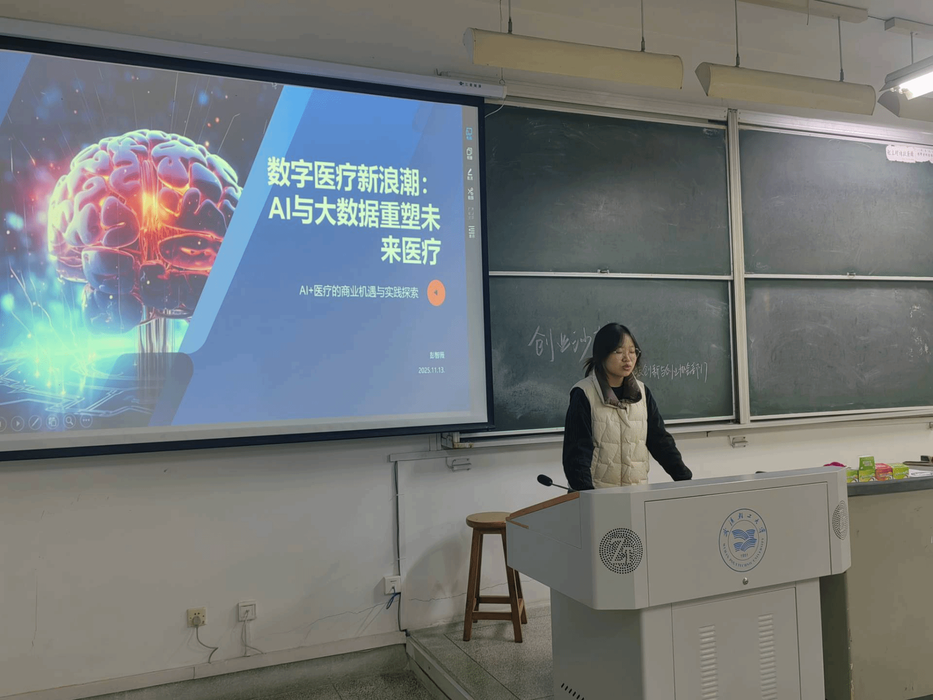 2025年11月13日下午6:30,科学与创业协会举办“智医赋能,数创健康”AI+医疗创新应用创业沙龙。会议由科学与创新协会会长彭智薇主持,科创部全体成员共同参与。